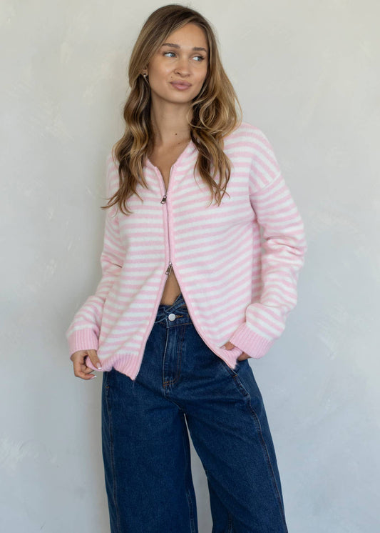 Cooper Zip Up Hoodie in Baby Pink