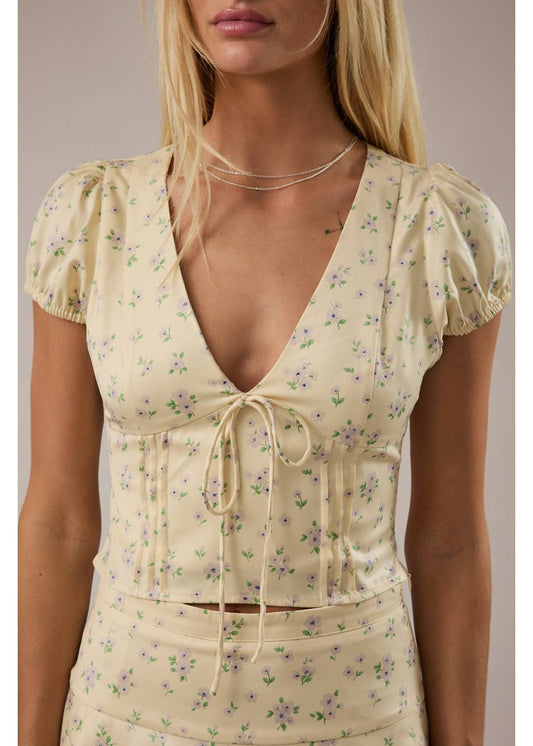 Cap Sleeve V-Neck Crop Top