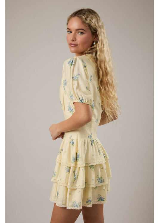 Puff Short Sleeve V-Neck Tiered Dress
