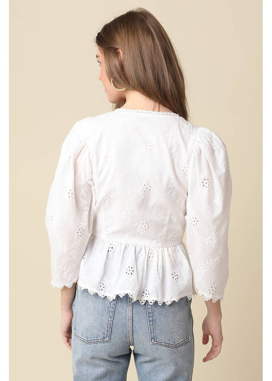 Our Pintuck Peplum Blouse features a delicate pintuck detailing with a button-front V neckline and a soft peplum hem with subtle scalloped edge for a feminine finish.